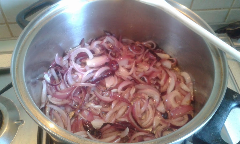 A hagymát felvágjuk laskára és a zsíron megpirítjuk, nem pároljuk:) Hozzátesszük a zúzott foghagymát és gyömbért ( én fagyasztóban tartom és úgy nagyon könnyű lereszelni) a fűszerkeveréket, chilit és a zsíron tovább pirítjuk. Ilyenkor már figyelni kell, hogy ne égjen meg tehát gyorsan kell csinálni. 🙂 Felöntjük konzerv paradicsommal. Ez maga a masala. Ezután beletesszük a kocára vágott húst. Addig főzzük amíg a hús megpuhul.
